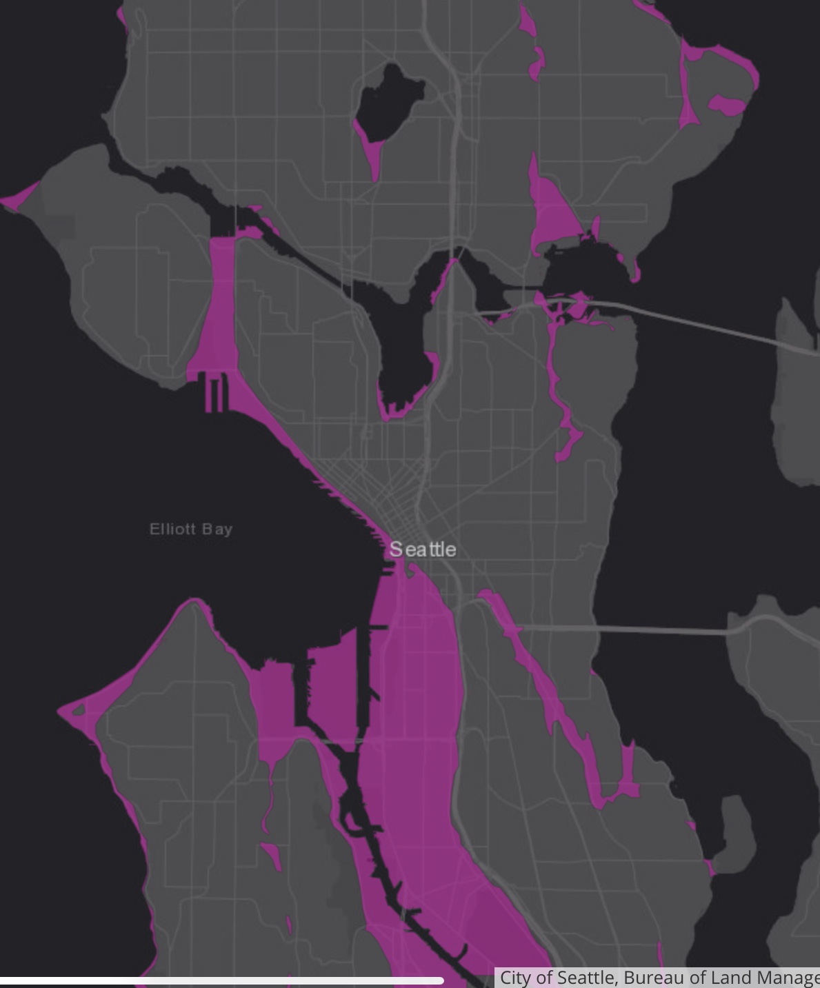 First of all, you may be worried about a tsunami. For Seattle, the flooding risk from a tsunami after a large earthquake is very specific and quite low (see map below). Unless you are right on the waterfront or at the Port of Seattle it shouldn’t be your first worry. If you are in a tsunami risk zone, then review a plan to get to higher ground immediately after an earthquake.