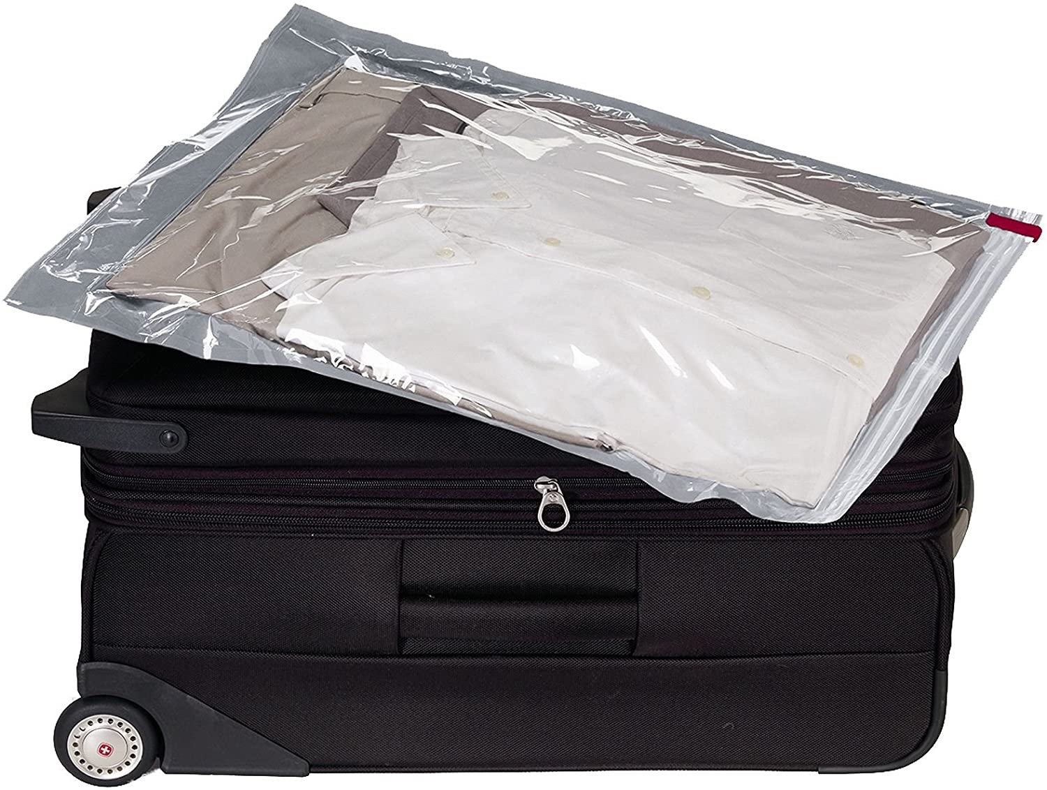Plastic space saver packing bags can both waterproof your clothes and create more room in your kit. For example, these found on Amazon.com.