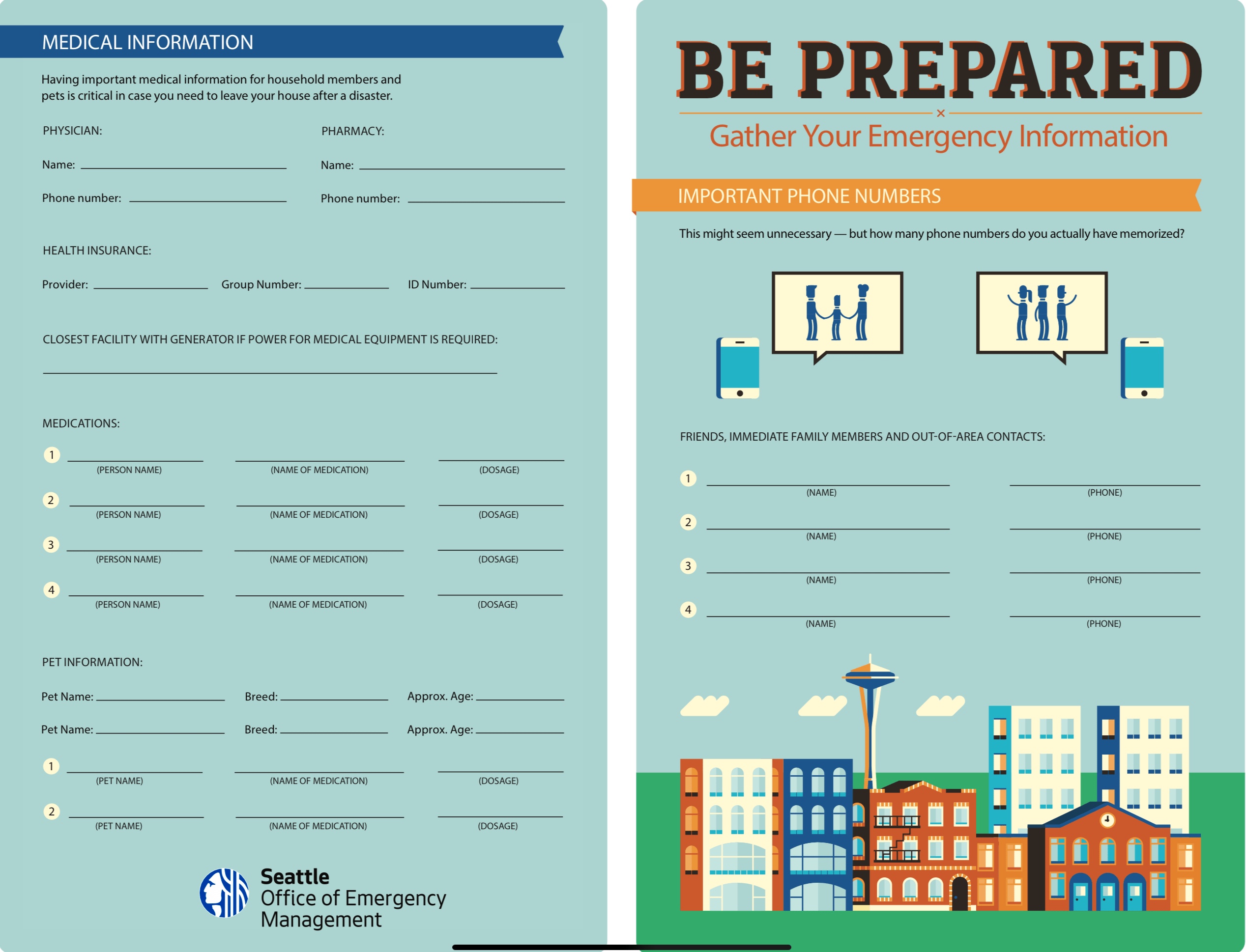 Have important phone numbers written down. The City of Seattle has provided this nice printable PDF. Fill it out and include it in your 72 Hour Kit.
