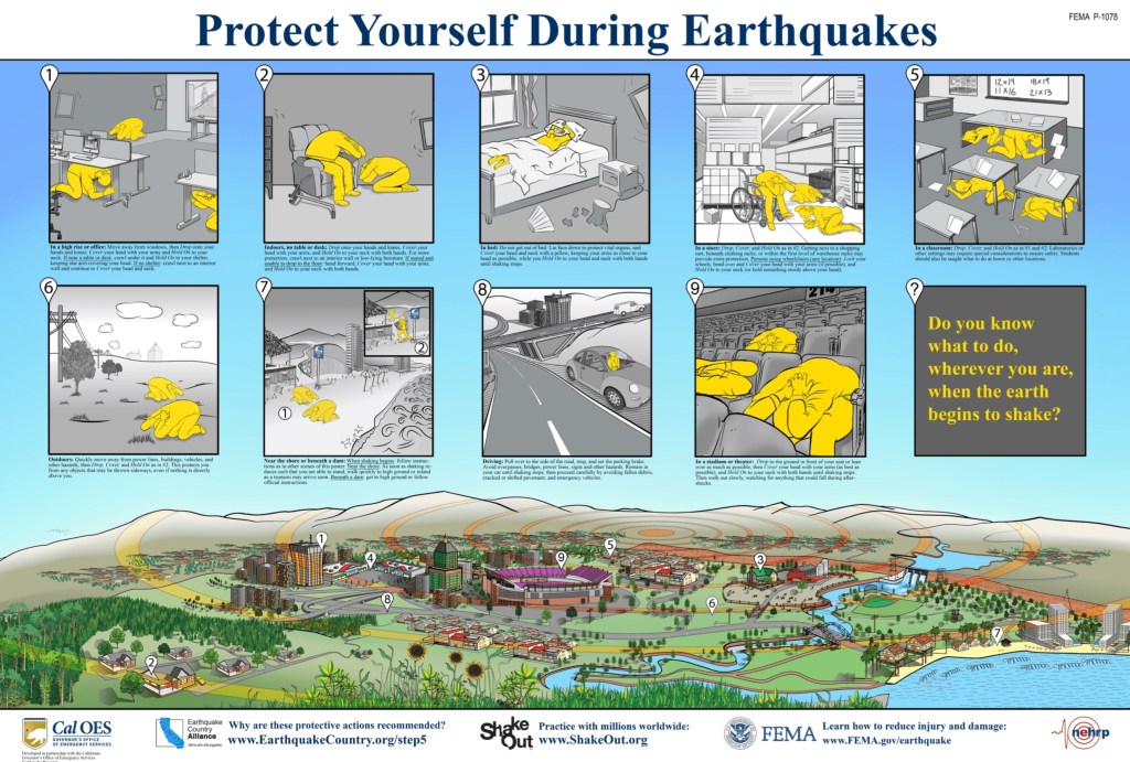 The goal during an earthquake is within 3-4 seconds getting to an earthquake safe place: