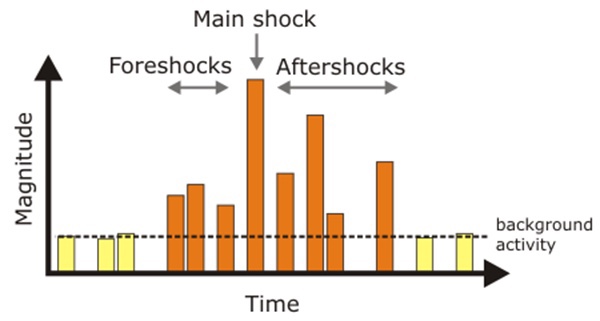If you are outside during a quake try to stay away from buildings, trees, and power lines. Get low to the ground and cover your head.