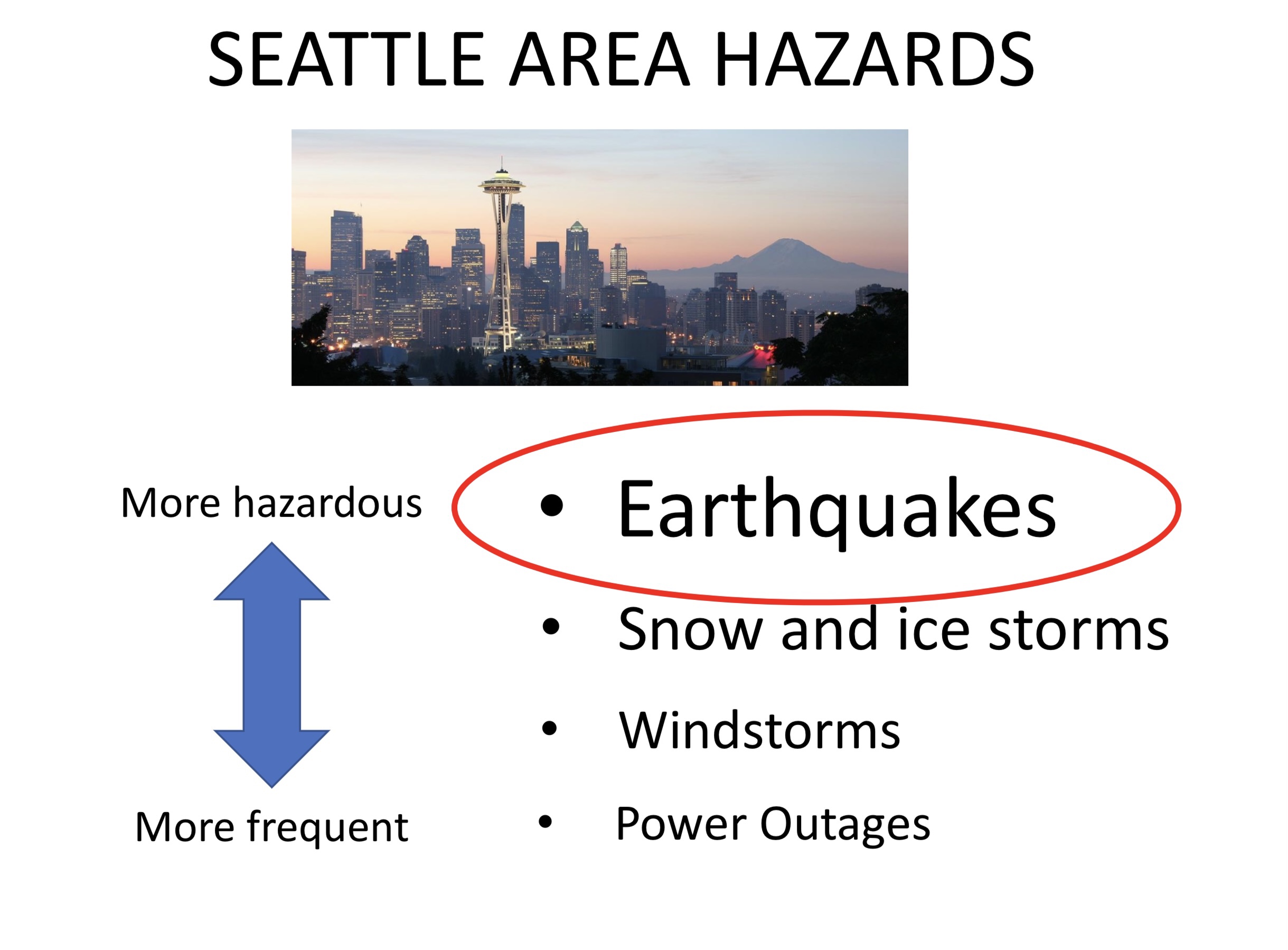 Seattle has a comprehensive evaluation of disastrous threats to the city and #1 is an earthquake due to how destructive it could be.