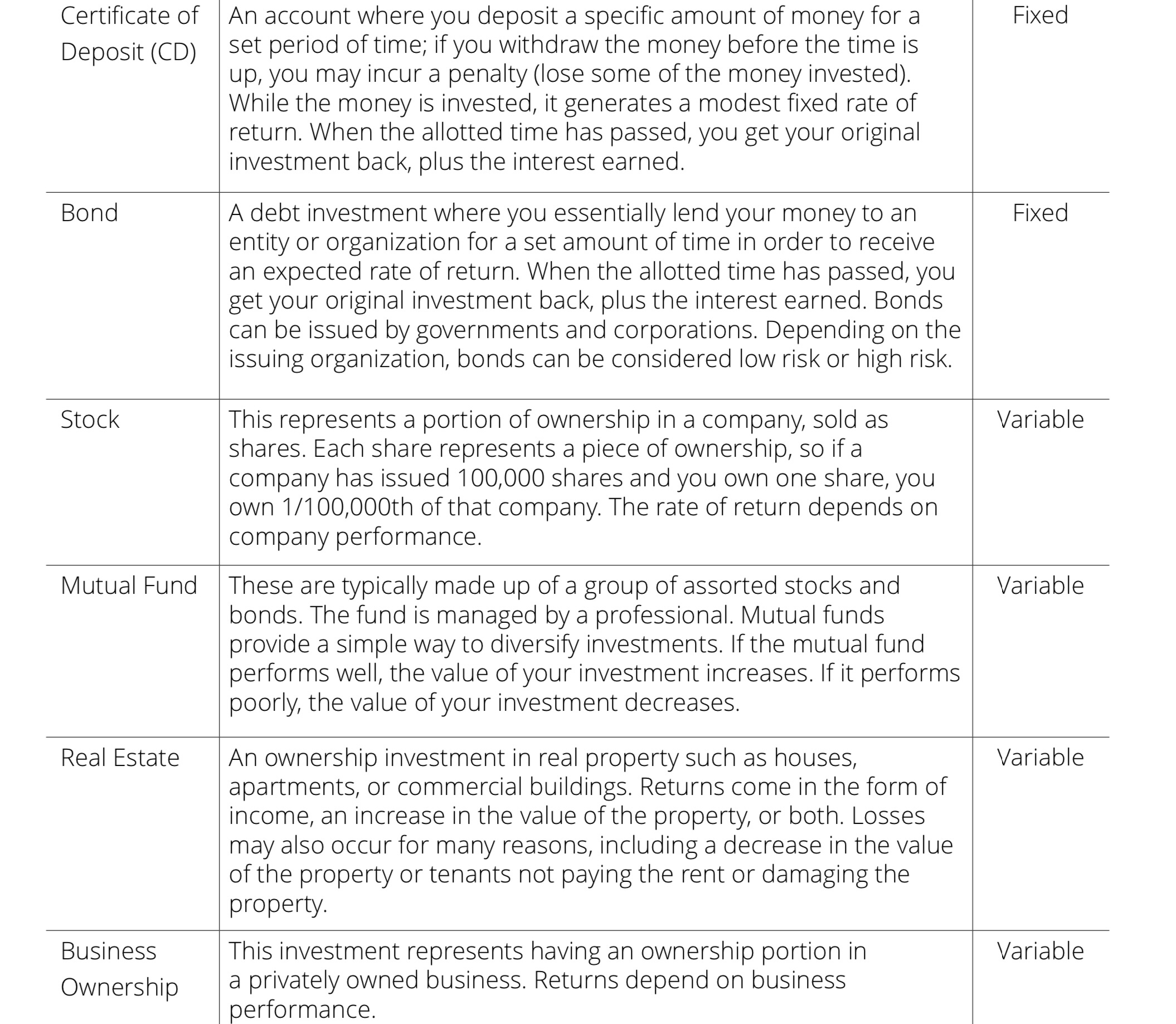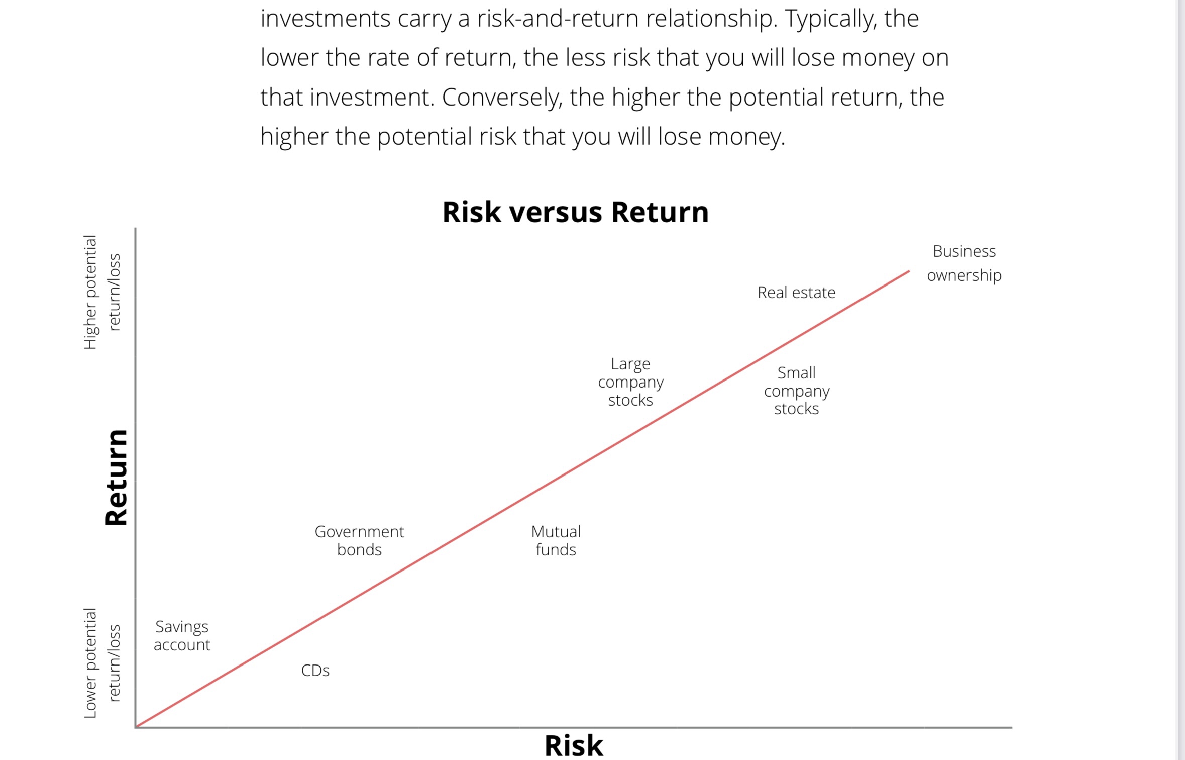 The type of investments you may want to make are based on a risk vs return relationship. How much risk you can afford to take requires an analysis of your whole financial picture, including predicting how much you will need for retirement. It can be helpful to have a professional financial advisor help guide you. If you are unsure of where to go, trusted advisors in your area can be found using Dave Ramsey’s Smartvestor tool. Personally, I use Pacific Capitol Resource Group. Both of these options include free consultations to see if you are a good match with the recommended advisor.