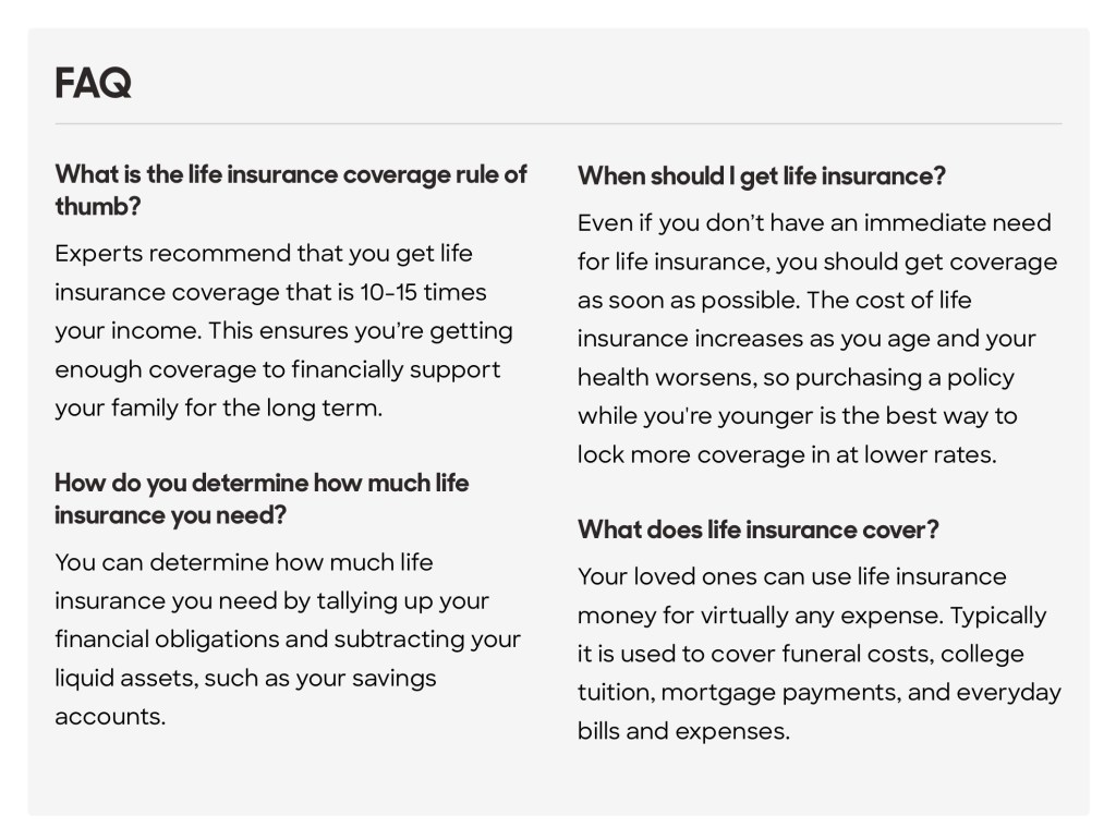 Let’s talk Life Insurance. Sometimes part of a work benefit package includes life insurance. How do you know you have enough life insurance? A rough rule of thumb is 10 times your income minus your current liquid assets, such as what’s in your savings or emergency fund account.